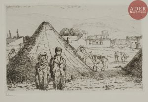 Jean-Émile LABOUREUR - L’Acropole vu d’un campement de tziganes. 1911. Eau-forte. 112 x 175. Laboureur 97. Parfaite épreuve sur vélin blanc, signée et numérotée au crayon. Toutes marges. Très rare. Tirage à 5 ou 6 épreuves.