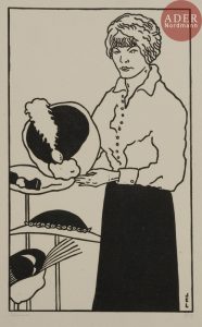 Jean-Émile LABOUREUR - Modiste aux quatre chapeaux. 1912. Bois gravé. 250 x 150. Laboureur 669. Très belle épreuve sur japon, signée et numérotée au crayon. Quelques infimes rousseurs. Toutes marges. Tirage à 35 épreuves. Joint : même...