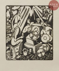 Jean-Émile LABOUREUR - Le Gramophone. 1918-1921. Bois gravé. 247 x 215. Laboureur 712. Très belle épreuve sur japon vergé mince, non signée. Quelques petites rousseurs essentiellement en tête du feuillet. Toutes marges. Tirage total à 45...
