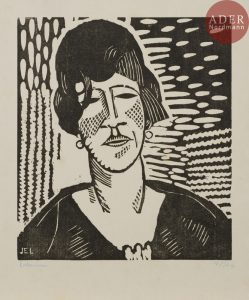 Jean-Émile LABOUREUR - Figure. 1923. Bois gravé. 250 x 215. Laboureur 742. Très belle épreuve sur japon vergé, signée et numérotée au crayon bleu. Quelques très claires rousseurs. Petite auréole claire d’humidité dans l’angle...