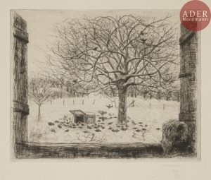 Jean FRÉLAUT - Le Piège. 1945-1946. Pointe sèche. 198 x 249. Frélaut 933. Très belle épreuve sur vélin, signée et numérotée au crayon. Toutes marges. Tirage à 30 épreuves.