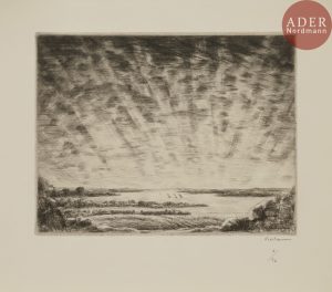 Jean FRÉLAUT - Ombre et lumière. Suite de quatorze eaux-fortes de Jean Frélaut. Paris, aux dépens des Cinq-Vingt, 1935. Un vol. grand in-4 contenant 14 gravures à la pointe sèche (et non à l’eau-forte comme annoncé). Frélaut 404 à 417....