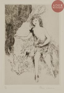 Marie LAURENCIN - La Semeuse. 1925. Eau-forte. 215 x 145. Marchesseau 81. Réunion de 2 très belles épreuves sur vélin fort, la 1re du 1er état (sur 2), avant de nouveaux travaux, annotée en pied de la main de J.-É. Laboureur, le tireur, la...