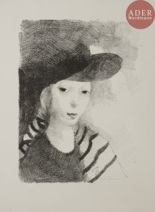Marie LAURENCIN - Portrait de l’artiste. 1927. Lithographie. 370 x 280. Marchesseau 130. Parfaite épreuve sur vélin blanc fort, signée au crayon, annotée en pied par H. M. Petiet. Toutes marges. Tirage total à 100 épreuves.