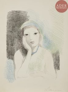 Marie LAURENCIN - Rêverie de Marie. 1930. Lithographie. 350 x 285. Marchesseau 152. Impression en couleurs. Réunion de 2 très belles épreuves sur japon et sur vélin blanc, signées au crayon (une à deux reprises). Quelques rares rousseurs...
