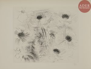 non 5 comme annoncé à l’achevé d’imprimer), 6 gravés à l’eau-forte et à la pointe sèche, 1 lithographié. Parfaites épreuves numérotées en chiffres romains au crayon, respectivement sur vélin, sur japon impérial, sur chine volant et en épreuves tirées sur les cuivres biffés et la pierre brûlée, sur vélin, 3 des suites sous chemises portant sur le premier plat un texte typographié, à deux reprises corrigé au crayon. Emboîtage. - Ce livre est le premier volume de la série « Les Grandes monographies », et le 19e de la collection « Peintres et sculpteurs d’Hier et d’Aujourd’hui », créée par P. Skira en 1943 et poursuivie par P. Cailler en 1947. Outre le tirage à nombre, il est annoncé avec un tirage à 120 exemplaires de chapelle et 225 exemplaires de luxe, dont 25 avec 4 suites de 5 sujets. Les suites ici présentées comportent toutefois 7 et non 5 sujets : aux sujets répertoriés (La Fontaine ; Le Pigeonnier I ; Le Figuier ; Musiciens mexicains ; Fleurs) s’ajoutent en effet deux sujets non décrits : Le Pigeonnier II et Anémones. Il semble à ce stade encore s’agir d’une recherche, au vu des annotations portées sur les chemises, qui hésitent entre 3, 4 ou 6 eaux-fortes à inclure dans les suites.