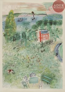 Raoul DUFY (d’après) - Normandie SNCF. Affiche. 1954. Tirage offset. 800 x 558. Impression en couleurs. Très belle épreuve sur vélin mince, du tirage avant la lettre. Nombreux courts plis et petits accidents essentiellement au bord gauche du...