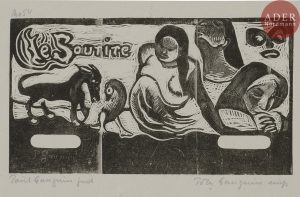 épreuves effectué par Pola Gauguin en 1921, annotée au crayon-encre « Paul Gauguin fait » puis « Pola Gauguin imp », et numérotée en tête à gauche. Toutes marges.