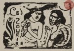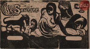 affaiblies et d’autres traits épaissis, le nom de Gauguin à peine apparent sous le cartouche. Joint : autre titre pour Le Sourire. 1899-1900. Gravure sur bois. 102 x 150. Guérin 81 ; Mongan, Kornfeld et Joachim 62 D. Épreuve sur japon, d’un tirage moderne (Prague, 1961 ?), avec quelques cassures dans le bois, de nombreuses lignes épaissies. Grandes marges. Ens. 2 p.