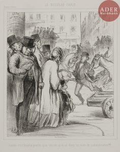 Honoré DAUMIER - Le Nouveau Paris. – Comme c’est heureux pour les gens pressés qu’on ait élargi les voies de communication !!!… 1862. Lithographie. 308 x 240. Delteil 3245. Très belle et fraîche épreuve sur vélin blanc fort, du...