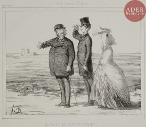 Honoré DAUMIER - A la Varenne St Maur. – La Voilà !... ma maison de Campagne !... 1862. Lithographie. 255 x 290. Delteil 3247. Très belle et fraîche épreuve sur vélin blanc fort, du tirage effectué par Bertauts pour Souvenirs...