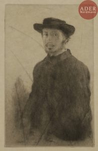 Edgar DEGAS - Autoportrait. 1857. Eau-forte et pointe sèche. 230 x 142. Delteil 1 ; Reed-Shapiro 8. Très belle épreuve sur simili-japon, du tirage effectué sur le cuivre rayé pour Ambroise Vollard (1918). Infime trace de frottement oblique...