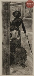 Edgar DEGAS - Au Louvre : la peinture (Mary Cassatt). 1879-1880. Eau-forte, vernis mou, aquatinte et pointe sèche. 302 x 125. Delteil 29 ; Reed-Shapiro 52. Très belle épreuve sur vélin blanc fort grenu, du tirage effectué sur le cuivre...