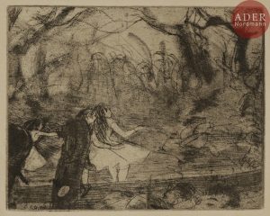 Edgar DEGAS - Sur la scène (2e pl.). 1876-77. Vernis mou, pointe sèche et roulette. 98 x 124. Delteil 32 ; Reed-Shapiro 24. Réunion de 2 parfaites épreuves sur simili-japon, du tirage effectué sur le cuivre rayé pour Ambroise Vollard...