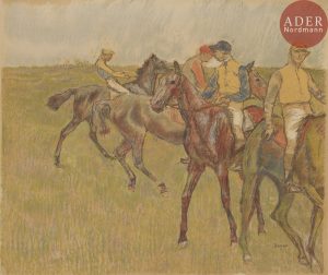 Edgar Degas (d’après) - Avant la course. 1910. Lithographie par Auguste Clot d’après un pastel de Degas. [511 x 583]. Impression en 16 à 18 couleurs. Très belle épreuve sur vélin mince, tirée pleines marges comme à l’ordinaire....