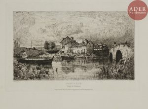 Adolphe APPIAN - Avant la pluie (village de Villeneuve). 1869. Eau-forte. 155 x 238. Curtis et Prouté 28. Très belle épreuve sur vergé, du tirage pour L’Illustration Nouvelle. Petites rousseurs aux bords du feuillet. Toutes marges.