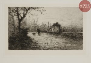 Adolphe APPIAN - Un jour d’automne à Artemare (Ain). 1871. Eau-forte. 158 x 244. Curtis et Prouté 32. Très belle épreuve sur chine appliqué, du 1er état (sur 4), avant toute lettre. Toutes marges.