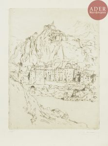 Pierre-Louis MOREAU - Sujets divers : Provence, Dunkerque, Le Pré Saint-Gervais, Dôle, etc. Eau-forte ; pointe sèche. Formats divers. Très belles épreuves sur différents papiers, toutes justifiées ou annotées et signées au crayon (sauf...