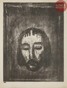 Georges ROUAULT (d’après) - Saint Suaire. Essai pour le Miserere. 1925. Phototypie par Clot d’après une composition de l’artiste. 578 x 444. Chapon et Rouault 113. Réunion d’une épreuve d’essai en noir, avant effaçage des croix de...
