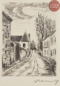 Maurice de VLAMINCK - Frontispice pour G. Duhamel, Les Hommes abandonnés, éd. Marcel Seheur, 1927. Eau-forte. 136 x 102. Walterskirchen 122. Parfaite épreuve sur simili-japon fort, signée au crayon. Toutes marges. Joint : La Rue de la...