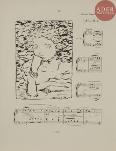 Pierre BONNARD - Petites scènes familières / Pour piano. Paris, E. Fromont éd., 1893. Lithographie. Format de l’album : 355 x 275. Roger-Marx, Bouvet 5 à 24. Recueil de mélodies de Claude Terrasse, illustrées par Bonnard. Exemplaire très...