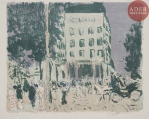 Pierre BONNARD - Les Boulevards. 1900. Lithographie. 271 x 330. Bouvet 72. Impression en couleurs. Très belle et fraîche épreuve sur chine volant, avec variantes de couleurs, le ciel bleu lavande (au lieu de violet) et le vert amande (au lieu...