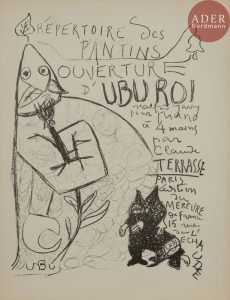 Alfred JARRY - Répertoire des pantins : Ouverture d’Ubu Roi ; La Marche des Polonais ; La Chanson du décervelage. Paris, éd. du Mercure de France, 1898. Lithographie. 350 x 270. Arrivé 63 à 65 ; Aitken 117 à 119. Réunion des 3...