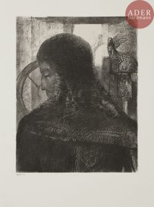 Odilon REDON - Vieux chevalier. 1896. Lithographie. 298 x 235. Mellerio 158 ; Johnson 101. Très belle et fraîche épreuve sur chine appliqué, avant la lettre, signée des initiales au crayon. Toutes marges. Tirage définitif avec la lettre : 100...