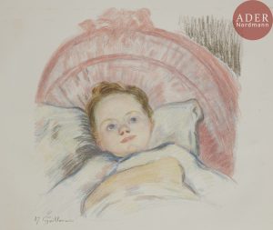 Armand GUILLAUMIN - Portrait de Marguerite ou Tête d’enfant. 1897. Lithographie. 425 x 415. Johnson 62 ; Kraemer 21. Impression en couleurs. Très belle épreuve sur vélin blanc fort, numérotée et signée à la pierre noire. Quelques...