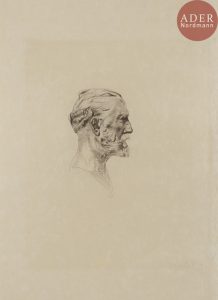 Auguste RODIN - Antonin Proust. 1884-1888. Pointe sèche. 238 x 177. Delteil 10 (v/vii) ; Thorson X. Superbe épreuve sur japon, avant la réduction du cuivre, signée au crayon et numérotée, du tirage de tête pour Pan (1897-1898), avec le...