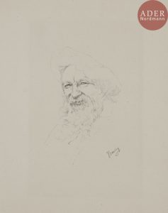 Jeanne BARDEY - Portrait d’Auguste Rodin. 1924-1925. Lithographie. 174 x 111. Verney et Lemaresquier 9. Très belle et fraîche épreuve sur chine volant. Toutes marges. Timbre sec : Galerie des Peintres-Graveurs (Lugt 1057b).