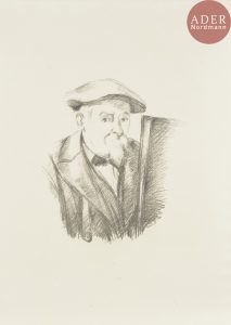Paul CÉZANNE - Portrait de Cézanne par lui-même. 1898. Lithographie. 325 x 280. Cherpin 8 ; Johnson 24. Parfaite épreuve tirée en noir sur vergé mince filigrané « mbm ». Quelques infimes points de rouille. Petite irrégularité dans la...