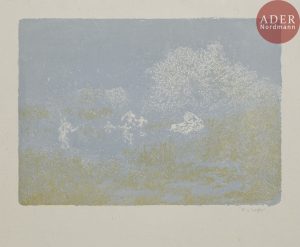 Ker-Xavier ROUSSEL - Paysages. 1898. Lithographie. 215-253 x 320-420. Salomon 14 à 19 ; Johnson 134-1 à 6. Impression en couleurs. Suite complète de 6 pl. Très belles et fraîches épreuves sur chine volant, signées au crayon. Quelques...
