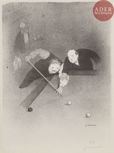 feuillet. L’indentation de la pierre très visible. Petites marges normales. Tirage à 100 épreuves. (Planche reproduite dans L’Escarmouche du 17 décembre 1893).