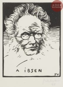 Félix VALLOTTON - À Berlioz. 1891 ; À Ibsen. 1894 ; À Stendhal. 1897. Bois gravé. 196 x 135, 159 x 124 et 159 x 125. Vallotton et Goerg 83 b, 136 a et 182 b. Très belles épreuves sur vélin, les deux 1res signées au crayon et au...