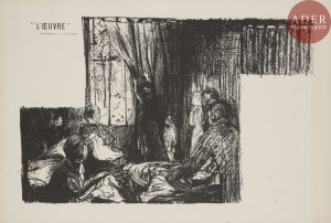 Édouard VUILLARD - Les Soutiens de la société. Programme pour le Théâtre de l’œuvre. 1896. Lithographie. 315 x 495. Roger-Marx 24. Très belle et fraîche épreuve sur vélin glacé ivoire, d’un état intermédiaire non décrit, entre le...