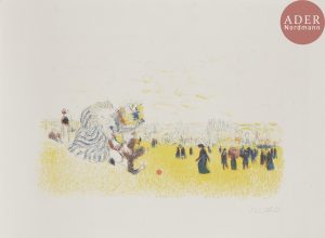 Édouard VUILLARD - Jeux d’enfants. 1897. Lithographie. 260 x 430. Roger-Marx 29 ; Johnson 154. Impression en couleurs. Très belle et fraîche épreuve sur chine volant, signée au crayon. Quelques rares rousseurs. Court pli cassé dans...