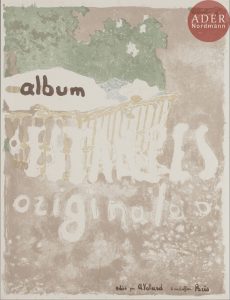 Édouard VUILLARD - Projet de couverture pour un album d’estampes. Vers 1899. Lithographie. 597 x 468. Roger-Marx 47 ; Johnson 156. Impression en couleurs. Très belle et fraîche épreuve sur chine volant, du 2e état (sur 3), avant les touches...