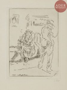 Walter SICKERT - Wellington House (The Little Visitor). Eau-forte. 148 x 111. Très belle épreuve sur vergé mince, signée au crayon puis titrée en pied. Deux infimes accidents (petites indentations) aux bords du feuillet. Toutes marges.