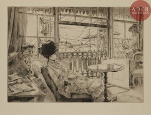Wentworth 29 (i/iii). Fortes rousseurs. Courts plis de tirage et salissures au bord gauche du feuillet. - Quarrelling. W. 18. Quelques rousseurs claires. - The Rubens’ Hat. W. 8. Quelques rousseurs. - The Thames. W. 20. Une petite rousseur en pied. - Bastien Pradel. Siege of Paris. W. 15. - By the Window. W. 9. Quelques fortes rousseurs hors du sujet. - Portrait of Miss L… W. 23. Quelques rousseurs hors du sujet. - The First Killed I Saw. Siege of Paris. W. 19 II. Quelques rares rousseurs claires. - Ramsgate. W. 22. Infimes rousseurs. - The Gallery of H.M.S. « Calcutta », Portsmouth. W. 25. Fortes rousseurs éparses. - - Très belles épreuves sur vergé ou vélin, toutes timbrées (Lugt 1545), montées sous passe-partout à rabat portant dans l’angle inférieur droit du second plat le timbre : « Mounted by R. Guéraut / 2, Orris Villas, Hammersmith ». Précédées d’un titre et d’un index typographiés en rouge et noir. Portefeuille imprimé de l’édition, demi-rel., défraîchi. De toute rareté. Premier tirage à 25 épreuves. Tirage total à 50 épreuves.