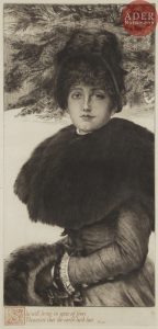 James-J.-J. TISSOT - Promenade dans la neige. 1880. Eau-forte et pointe sèche. 566 x 267. Wentworth 48. Très belle et fraîche épreuve sur vergé crème, du 2e état (sur 3), avec la lettre tirée en rouge, timbrée (Lugt 1545). Très claires...