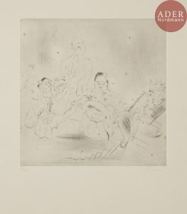 Jules PASCIN (Julius Pinkas, dit) - Le Jugement de Salomon. 1925. Pointe sèche. 270 x 265. Rambert 128. Parfaite épreuve sur vélin, numérotée et signée au crayon. Toutes marges. Tirage à 100 épreuves.