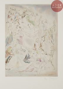 Jules PASCIN (Julius Pinkas, dit) - Au bal. (Pl. pour Charles Perrault, Cendrillon, Paris, éd. M.-P. Trémois, [1929]). Vernis mou, pointe sèche et aquatinte. 352 x 256. Rambert p. 248. Impression en couleurs. Très belle épreuve sur vélin...