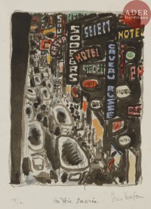 Gus BOFA (Gustave Blanchot, dit) - La Voie Sacrée. 1926. Lithographie. 248 x 185. I.F.F. 5. Très belle épreuve sur vélin fort, largement rehaussée à la gouache, numérotée et signée au crayon. Trace claire d’oxydation et rousseurs...