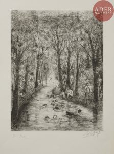 Édouard GOERG - Il y a du monde partout. 1947. Eau-forte et pointe sèche. 315 x 240. I.F.F. 170. Réunion de 2 épreuves sur vélin, l’une du 3e état, l’autre épreuve d’artiste, annotées et signées au crayon. Petites taches rousses en...