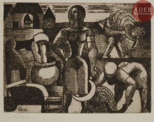 Marcel GROMAIRE - Travaux des champs. 1930. Eau-forte. 176 x 235. Gromaire 91. Très belle et fraîche épreuve sur vélin fort, signée au crayon, annotée « Bon à tirer », signée des initiales puis titrée. Toutes marges.