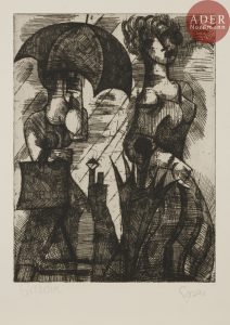 Marcel GROMAIRE - Pluie. 1999. Eau-forte. 240 x 177. Gromaire 99. Parfaite épreuve sur vélin, signée et annotée « Essai » au crayon. Toutes marges. Tirage définitif à 30 épreuves.