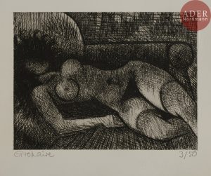 Marcel GROMAIRE - Nu couché. 1939. Eau-forte. 178 x 238. Gromaire 115. Parfaite épreuve sur vélin blanc, numérotée et signée au crayon. Toutes marges. Tirage à 50 épreuves.