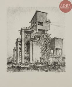 en tête à une pl. Toutes marges non ébarbées. Tirage à 33 ou 40 épreuves. Joint : Travaux du Canal de Kembs. 1930. Lithographie. 390 x 340. I.F.F. 99. Très belle épreuve sur vélin blanc, annotée « Bon à tirer » et signée au crayon. Infimes rousseurs. Toutes marges. Ens. 7 p.