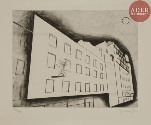 Stanley William HAYTER - Paysages urbains. Éditions des Quatre Chemins, Paris. 1930. Pointe sèche. Format de l’album : 385 x 290. Black et Moorhead 33 à 38. Suite complète de 6 planches. Belles épreuves homogènes sur vélin, à toutes...